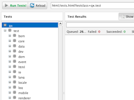 Open index.html from the newly created top-level test folder in your browser. The Testrunner application allows you to select and run the tests under your application namespace: