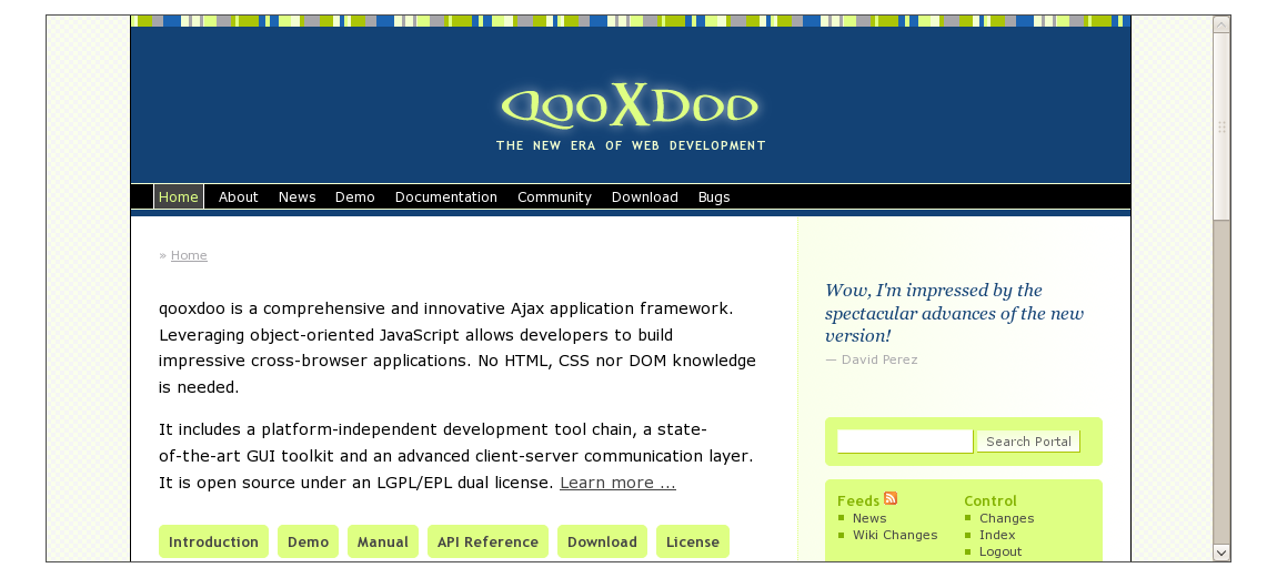 The iframe is a container widget for displaying any HTML page. It integrates seamlessly in your application though it can be styled like any other qooxdoo widget and offers an load event to control the page that's loaded within the widget. And the built-in blocker element prevents the native iframe element to handle any key or mouse event to ensure that e.g. the user navigates away by clicking a hyperlink.
