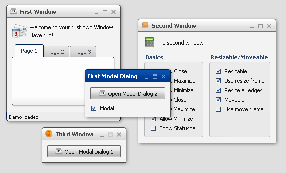 The window widget can be used to show dialogs or to realize a MDI (Multiple Document Interface) Application.